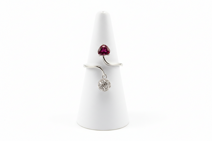 Anello in Oro Bianco con Diamanti e Rubino a forma di Cuore
