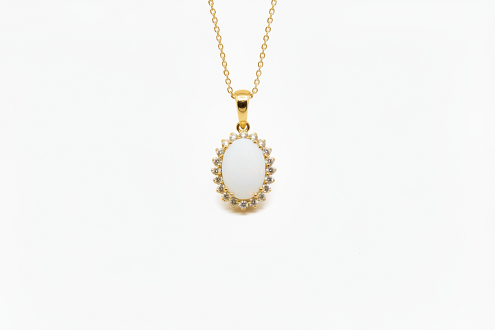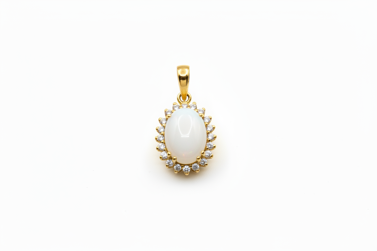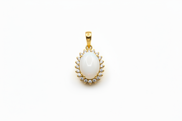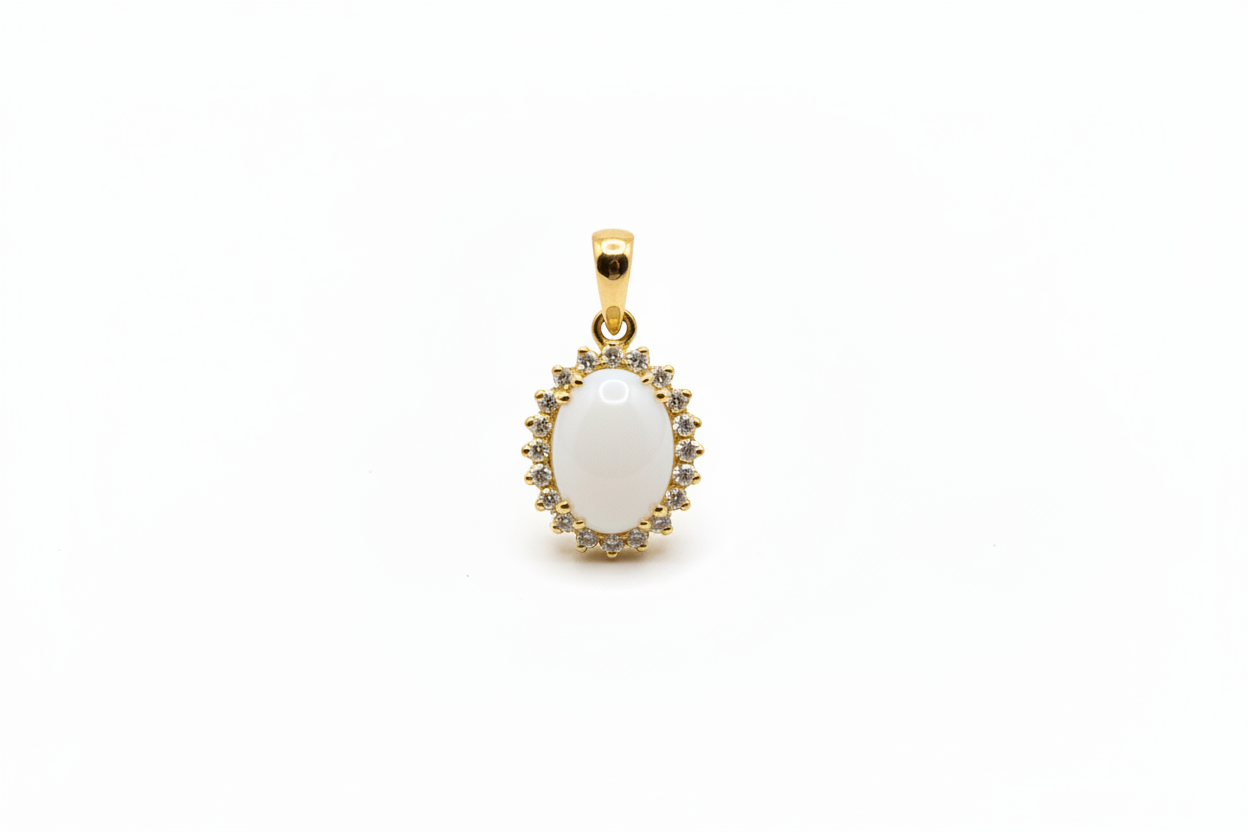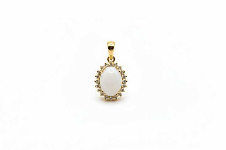 Ciondolo con Pietra di Latte Materno a Forma Ovale in Oro Giallo 18 Kt. e giro di Diamanti