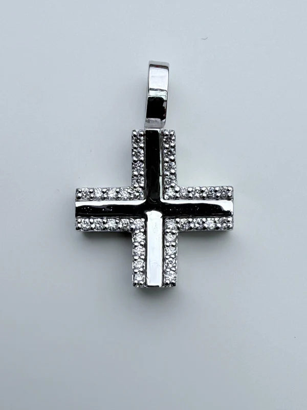 Questo ciondolo croce da uomo, alto 2,5 cm, unisce design originale e raffinatezza grazie ai diamanti incastonati con cura. Una scelta elegante che valorizza il tuo stile con un tocco di luce unica, perfetto per chi cerca un accessorio distintivo e prezioso.