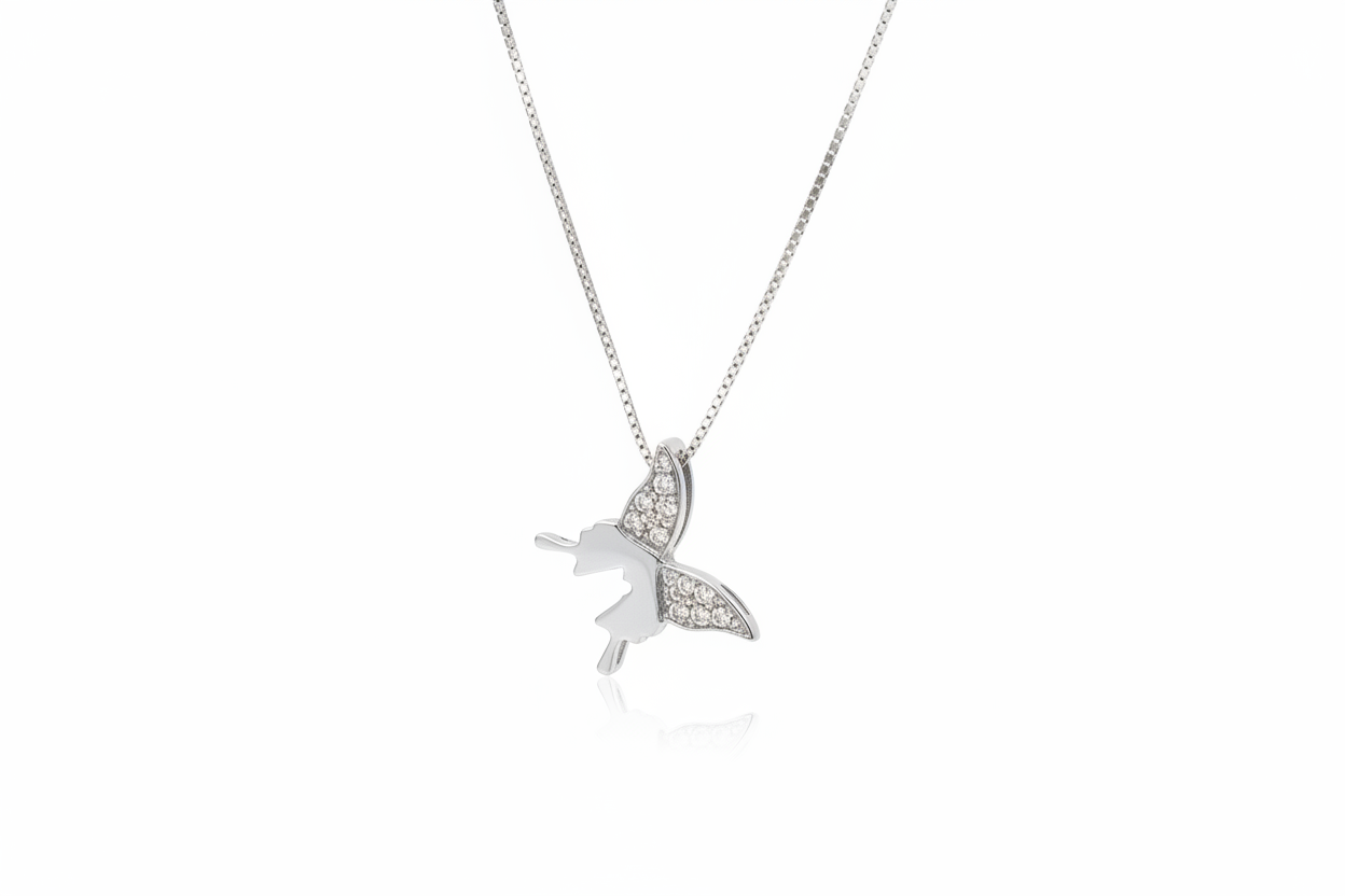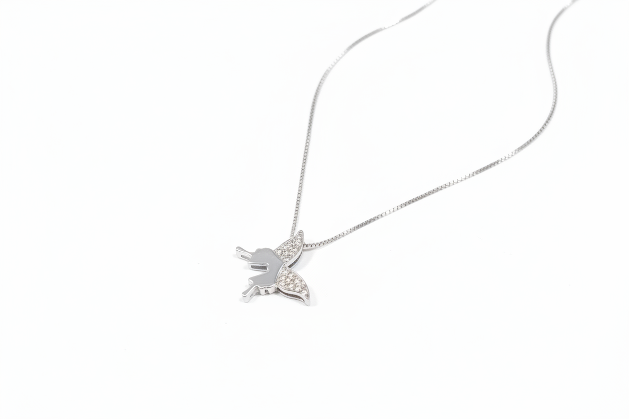 Ciondolo oro bianco 18 carati a forma di Farfalla con Pavè di Diamanti ct. 0.07