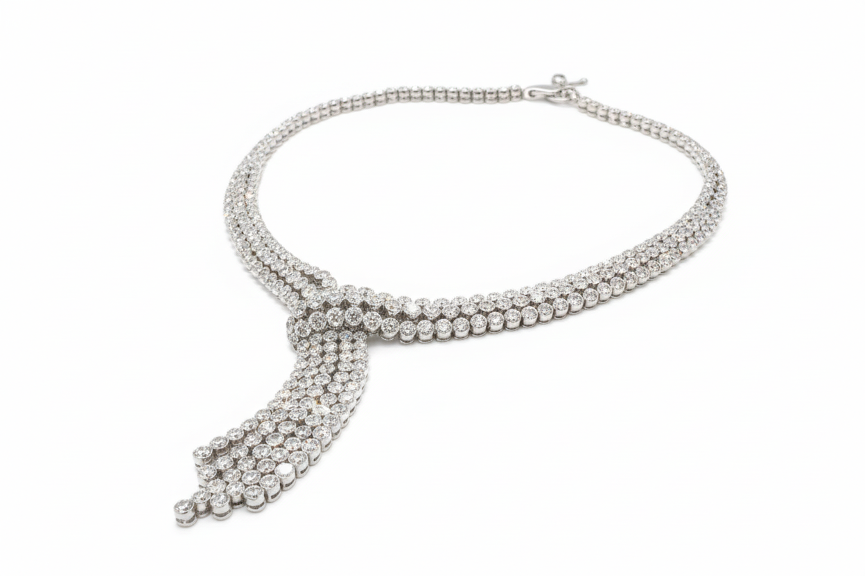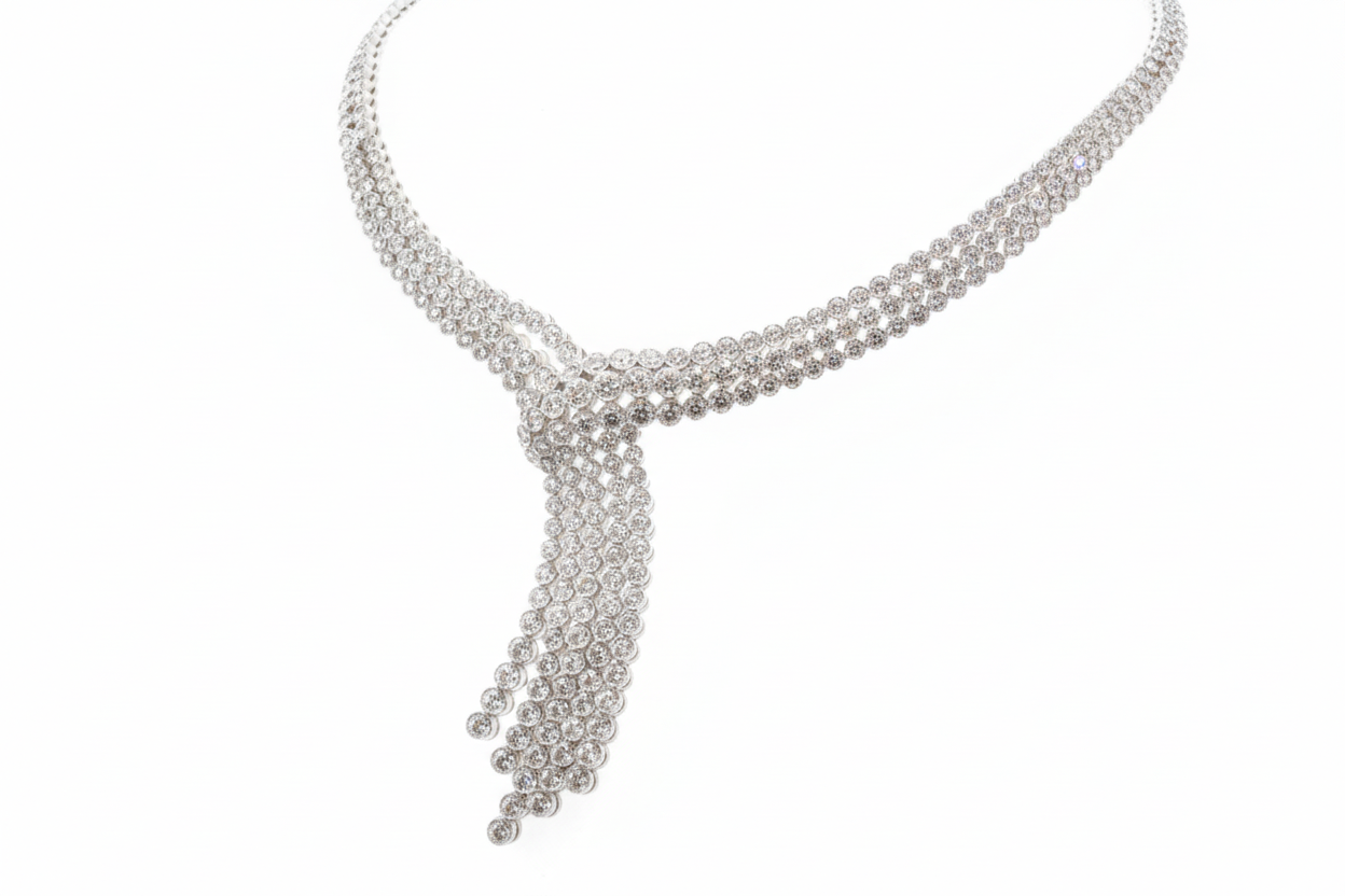 Collier in Oro Bianco a Mò di Sciarpa Tempestato di Diamanti