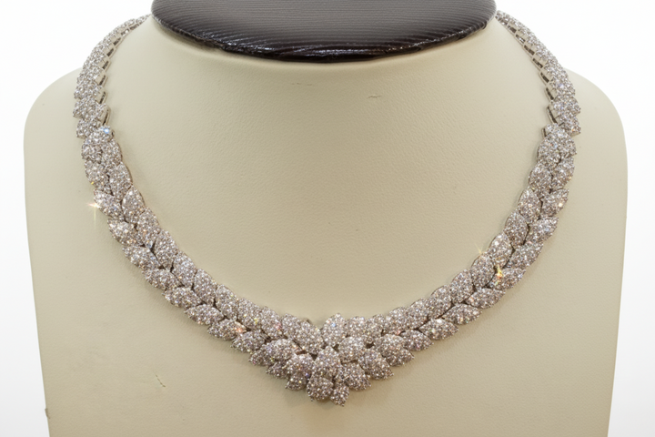 Collier in Oro Bianco Tempestato di Diamanti Modello Principesco