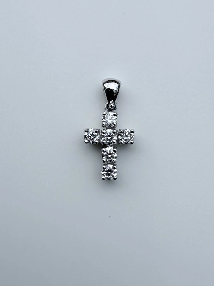 Croce classica con base quadrata e sei punte, caratterizzata da un design a griffe elegante.