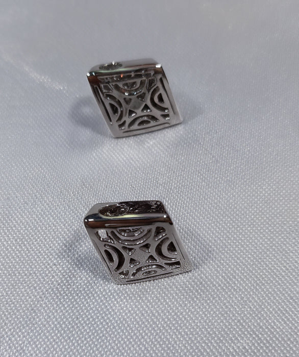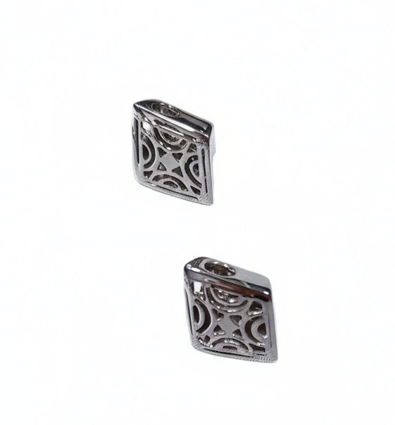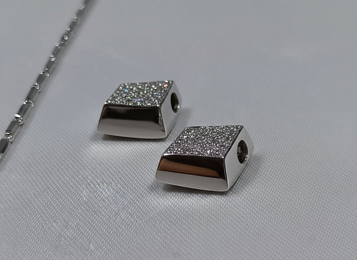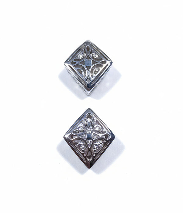Due Ciondoli gemelli in oro bianco 18 carati e diamanti con traforo artistico