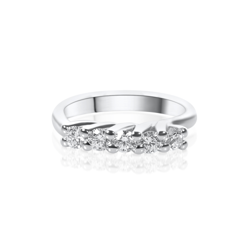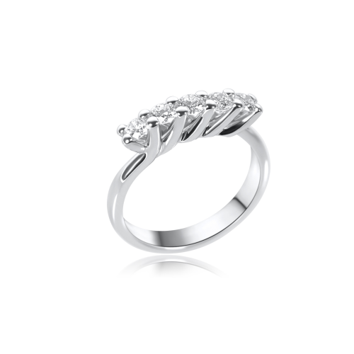 Questa fedina è impreziosita da cinque pietre incastonate secondo il modello Valentino, un dettaglio che dona eleganza e fascino senza tempo.