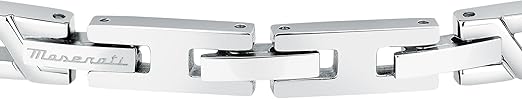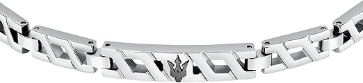 Maserati bracciale in acciaio di lunghezza 18,5 + 3 cm composto da una pratica chiusura a fibbia gioielleria. Maserati Jewels, perfetta sintesi di eleganza e sportività: un mix di italian style e passione per i motori che non conosce rivali.