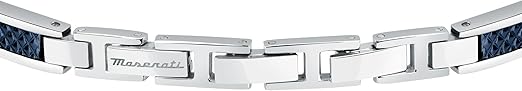 Maserati Bracciale da uomo in acciaio, IP blu, lunghezza 18.5 + 3 cm, collezione Iconic. La chiusura del gioiello a fibbia gioielleria è caratterizzata per essere pratica e sicura. Maserati Jewels, perfetta sintesi di eleganza e sportività: un mix di italian style e passione per i motori che non conosce rivali.