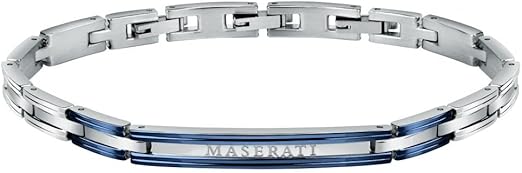 Maserati Bracciale da uomo, Collezione JEWELS, ref. JM121ATK11, in acciaio, pvd blu, lunghezza 22cm. Il gioiello è caratterizzato da una pratica chiusura a clip. Collezione Maserati Jewels: eleganti bracciali e pendenti con dettagli preziosi compongono i gioielli Maserati, dallo stile moderno, con finiture cromatiche che mixano sportività ed eleganza in chiave contemporanea.