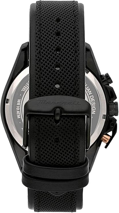 Orologio Traguardo R8871612036 Uomo Maserati. Quadrante rotondo in acciaio inossidabile nero con vetro minerale, movimento al quarzo e cinturino in pelle nera. Impermeabile fino a 10 bar. Con grande stile per l'uso quotidiano e materiali di qualità imbattibili.