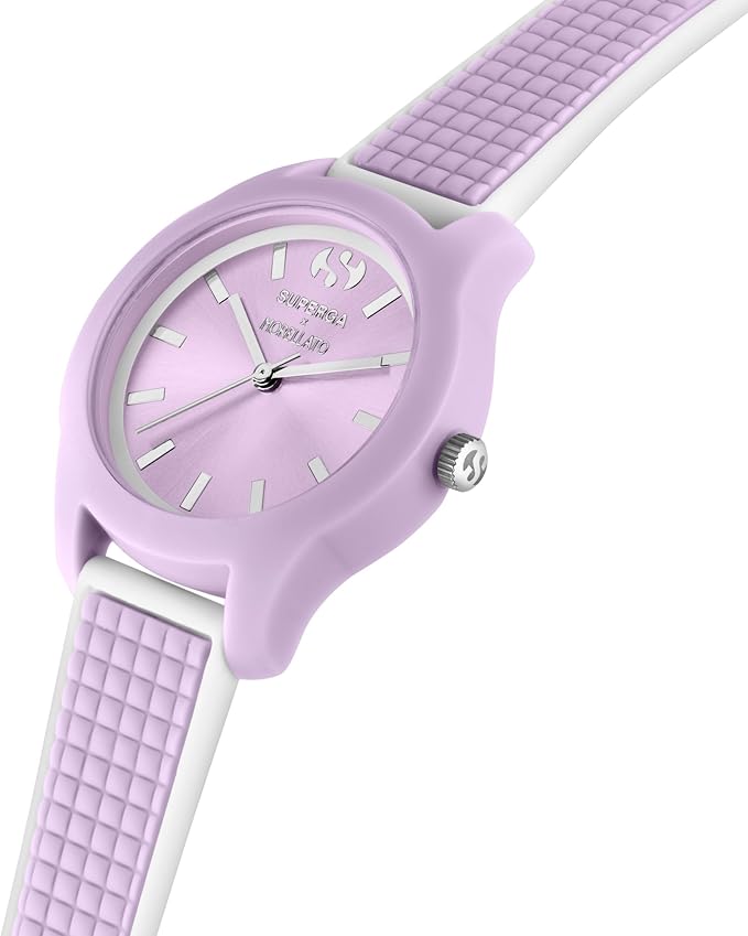 L'orologio Morellato in collaborazione con Superga è un segnatempo da uomo dal design vivace e sportivo. Realizzato in policarbonato con cinturino in silicone bianco, questo orologio analogico offre un movimento al quarzo con funzione solo tempo, 3H, e una resistenza all'acqua fino a 3 ATM. La cassa rotonda misura 38.00 mm di diametro e 8.70 mm di spessore, mentre il quadrante è protetto da un vetro in plastica e presenta indici e lancette bianchi per una lettura chiara. Dettagli distintivi come il logo "Superga x Morellato" sul quadrante e la trama del cinturino che richiama la suola delle scarpe Superga arricchiscono questa limited edition di autenticità e stile. L'orologio è presentato in uno special
