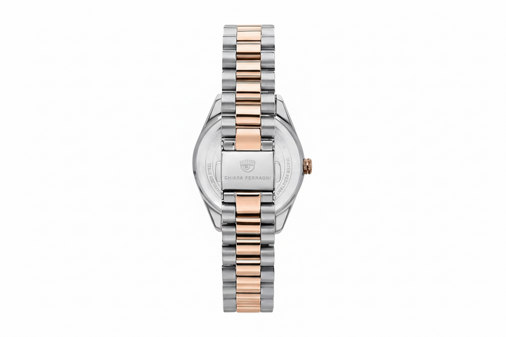 Orologio Chiara Ferragni Brand Everyday - R1953100504 - Genere: Donna, Materiale e finitura cassa: Acciaio, Cristalli, Misura cassa: 34mm, Spessore cassa: 8,40, Finitura cassa: Satinato, Colore cassa: Oro rosa, Vetro: Vetro minerale, Materiale cinturino: Metallo, Colore cinturino: Silver, Oro rosa, Chiusura: Fibbia deplojante con pulsanti, Movimento: Quarzo, Water resistant: 5 atm, Garanzia: Ufficiale 2 anni Chiara Ferragni Brand, Confezione: Originale Chiara Ferragni Brand