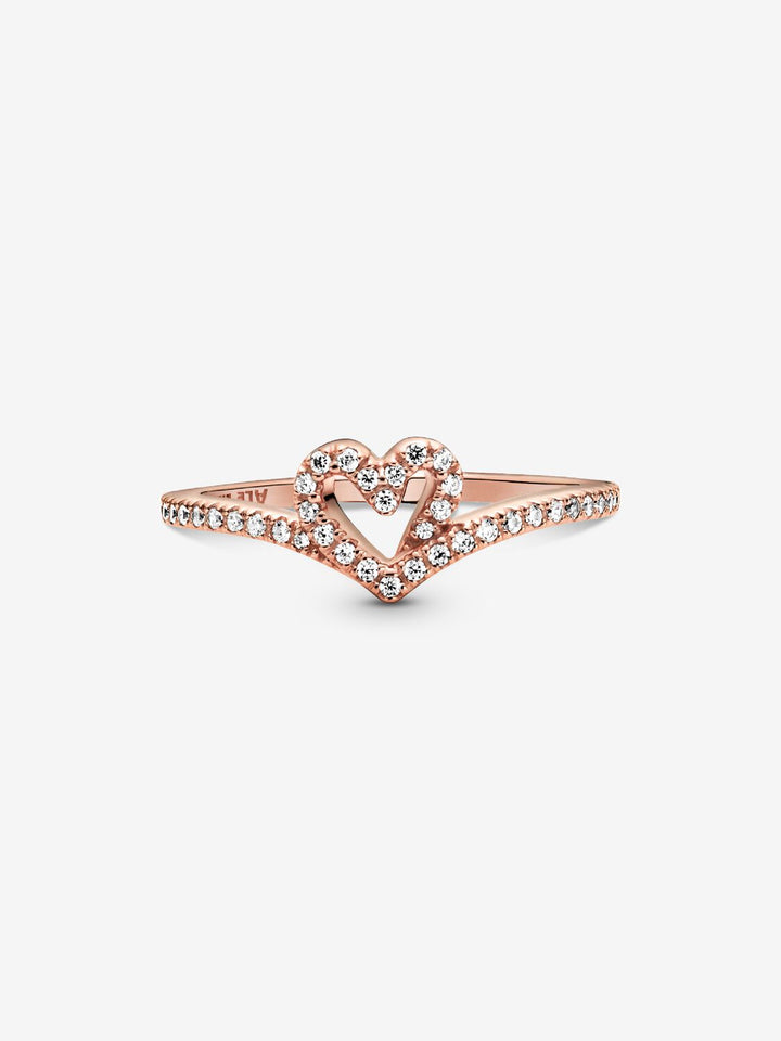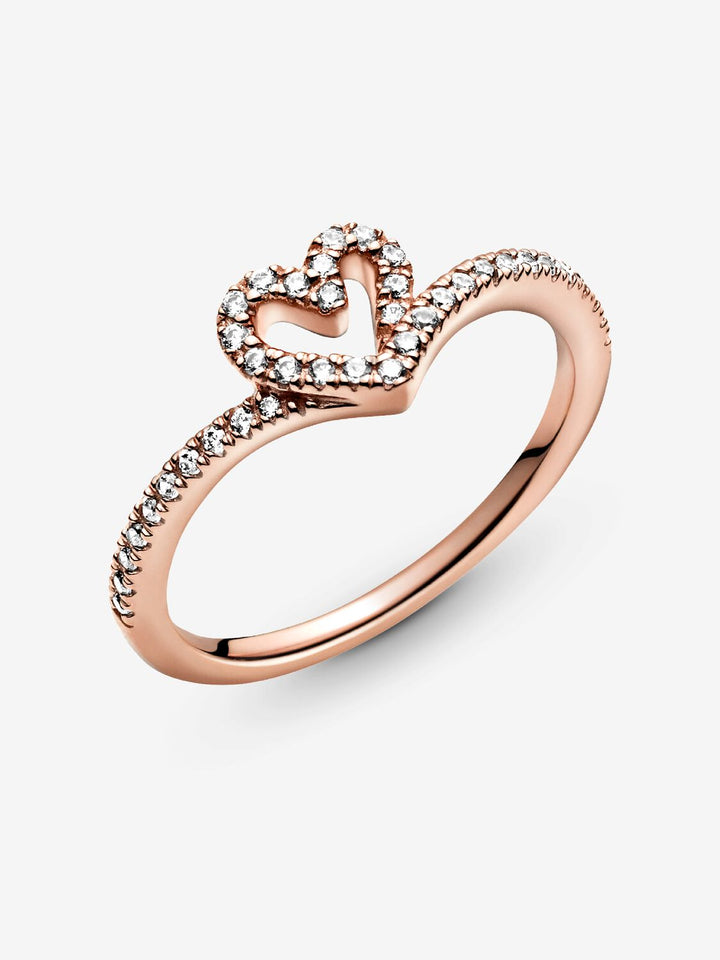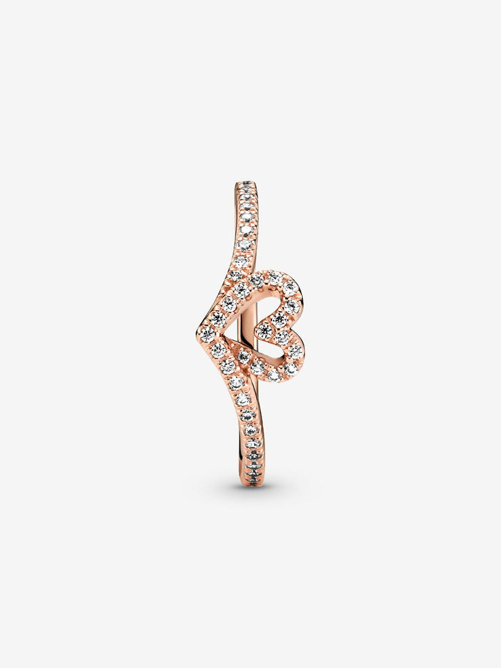 PANDORA Anello Cuore Desiderio scintillante, placcato in oro rosa 14k, con pietre di zirconia cubica incolori