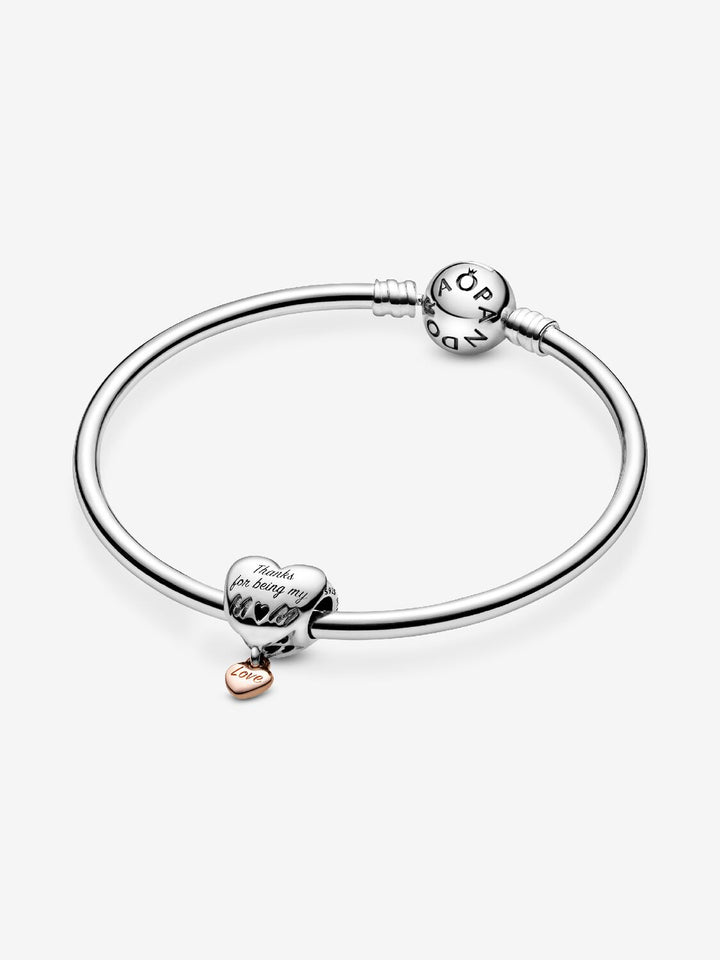 Lascia che sia questo charm bicolore a forma di cuore Ti Amo Mamma a parlare al tuo posto. Il gioiello a forma di cuore è rifinito a mano e presenta un pendente a forma di cuore realizzato con placcatura in oro rosa 14k. Il cuore in argento sterling 925 presenta l’incisione “Thanks for being my mum” (Grazie per essere mia mamma) con elemento a forma di cuore; il pendente riporta le scritte “Love” e “You” su ciascun lato. Mostra alla tua mamma quali sono i tuoi sentimenti più sinceri per lei con questo charm ricco di significato.