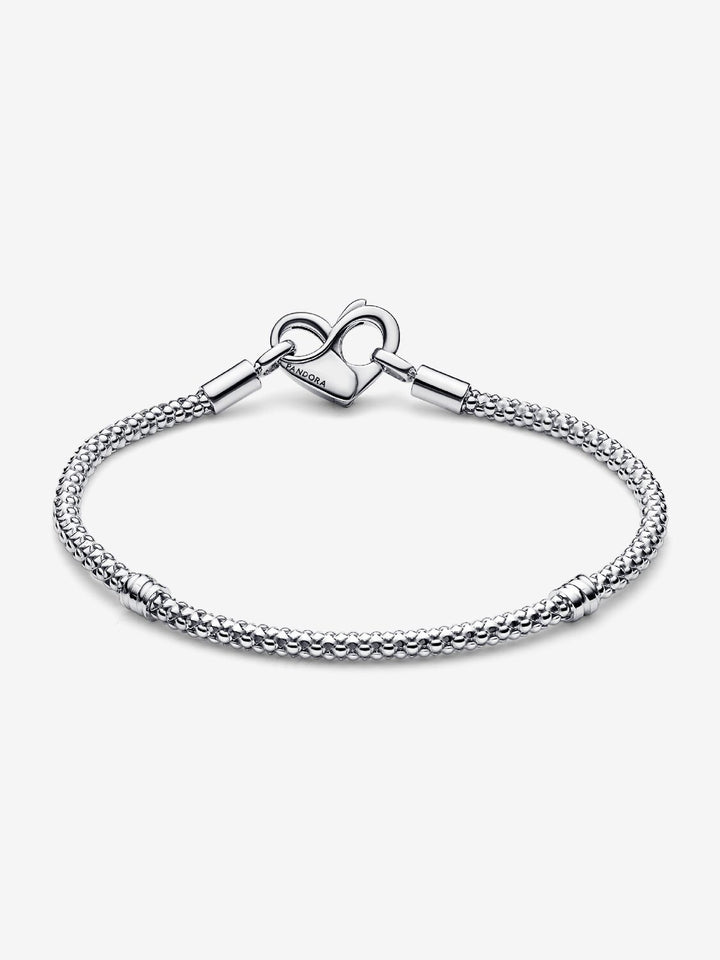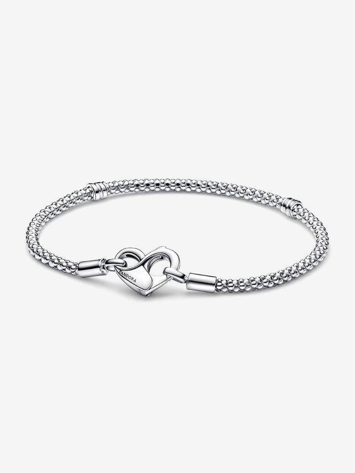 PANDORA Moments - Braccialetto con maglia geometrica in argento sterling con chiusura a cuore