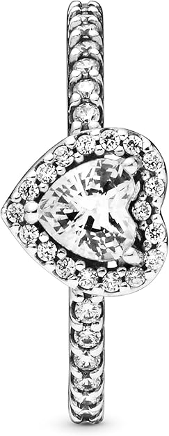 PANDORA Timeless - Anello con cuore in rilievo, in argento sterling, con pietre di zirconia cubica incolori