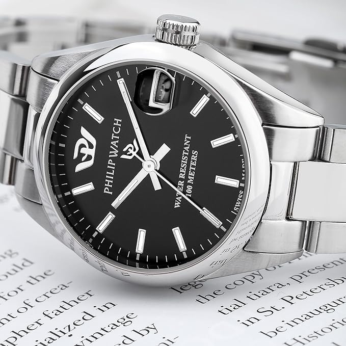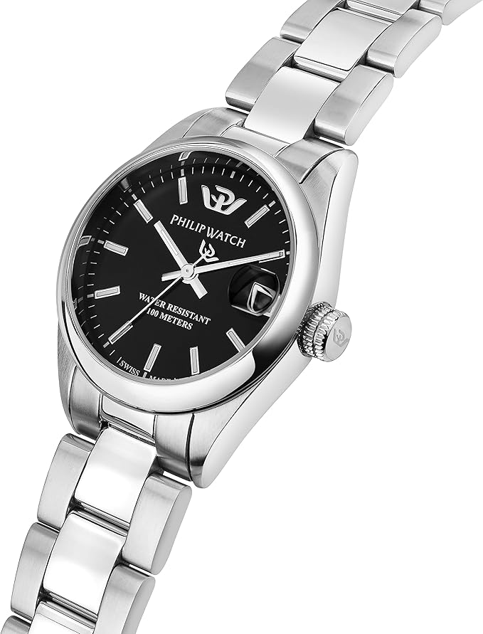 Orologio solo tempo da donna di Philip Watch della collezione caribe. La cassa è di 39mm. Orologio realizzato in acciaio con vetro zaffiro antiriflesso e datario. La resistenza all'acqua è di 10 atm. La referenza è R8253597623