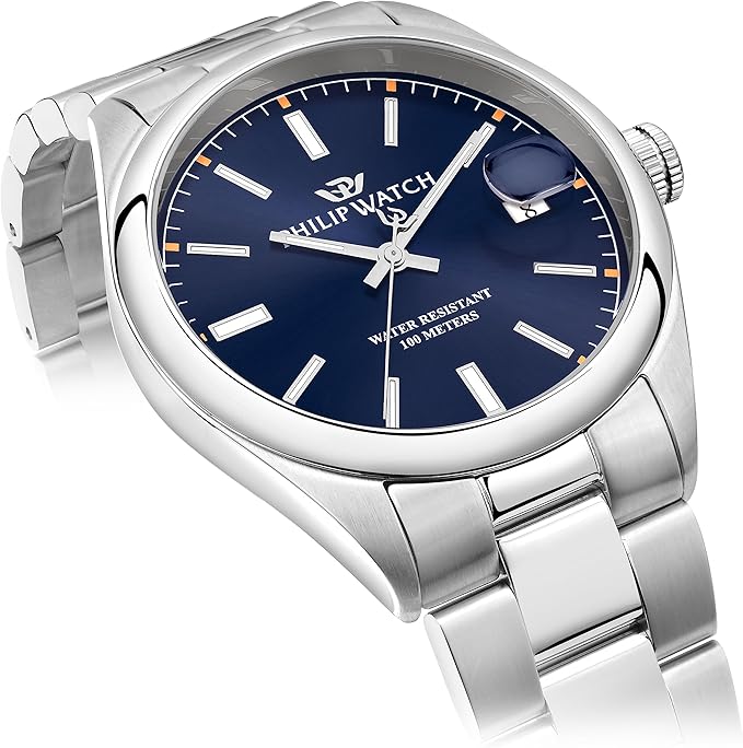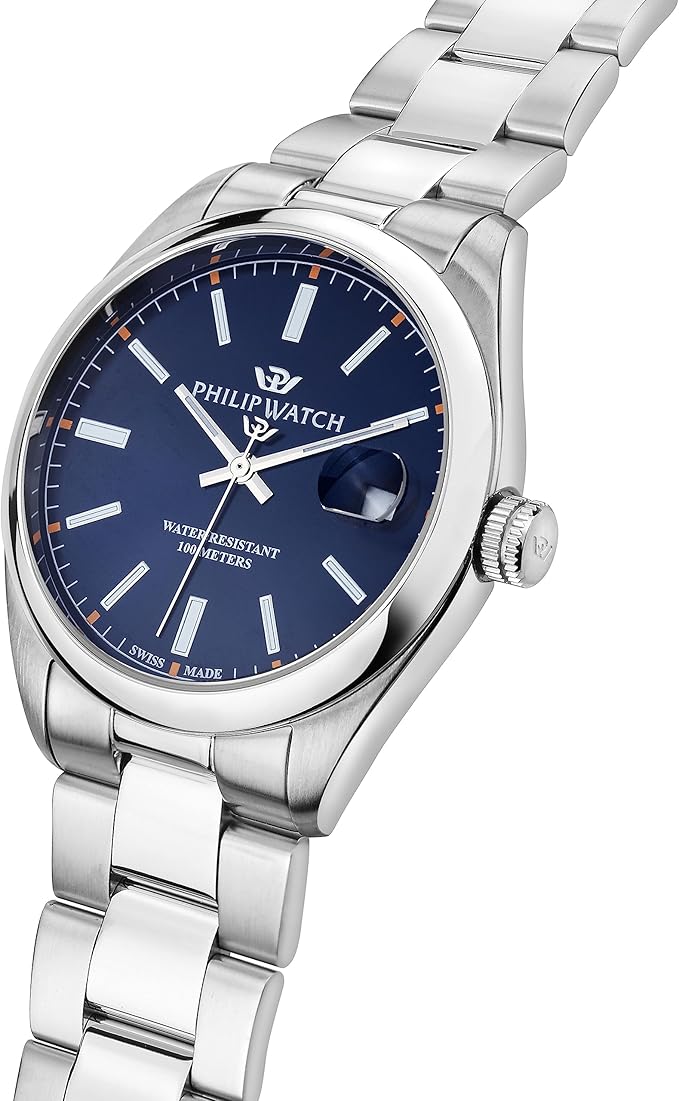 Philip Watch Orologio analogico al quarzo da uomo con cinturino in acciaio inossidabile 8033288984368, Argento, Bracciale