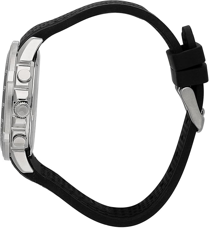 L'orologio è caratterizzato da un cinturino in silicone, con fibbia ardiglione.