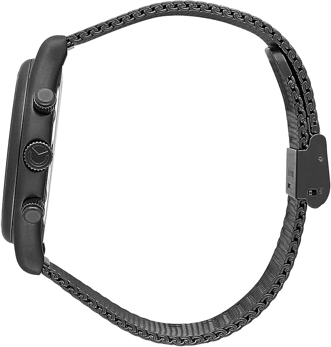L'orologio è caratterizzato da un cinturino in acciaio inossidabile, con chiusura a clip.